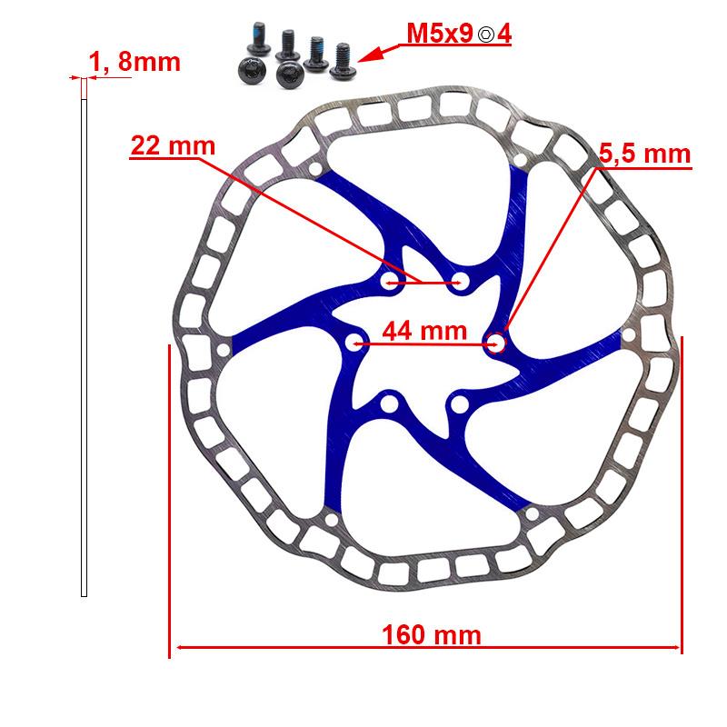 Bremsscheibe 160mm 6 Loch blau inkl. Schrauben Ersatzteil für Elektro Scooter